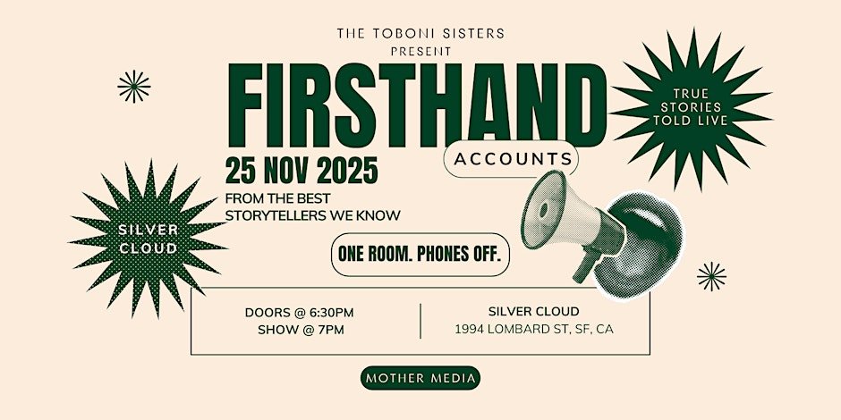 Welcome to FIRSTHAND, a new series that brings people together for a night of riveting stories, told in 5 minutes, from unexpected narrators. Buy Tix here!